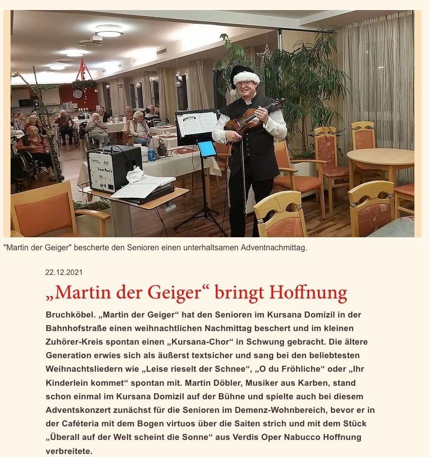 Der Geiger bringt Hoffnung ... das erfreut das Geiger-Herz. Danke an Kursana Domizil Bruchköbel: